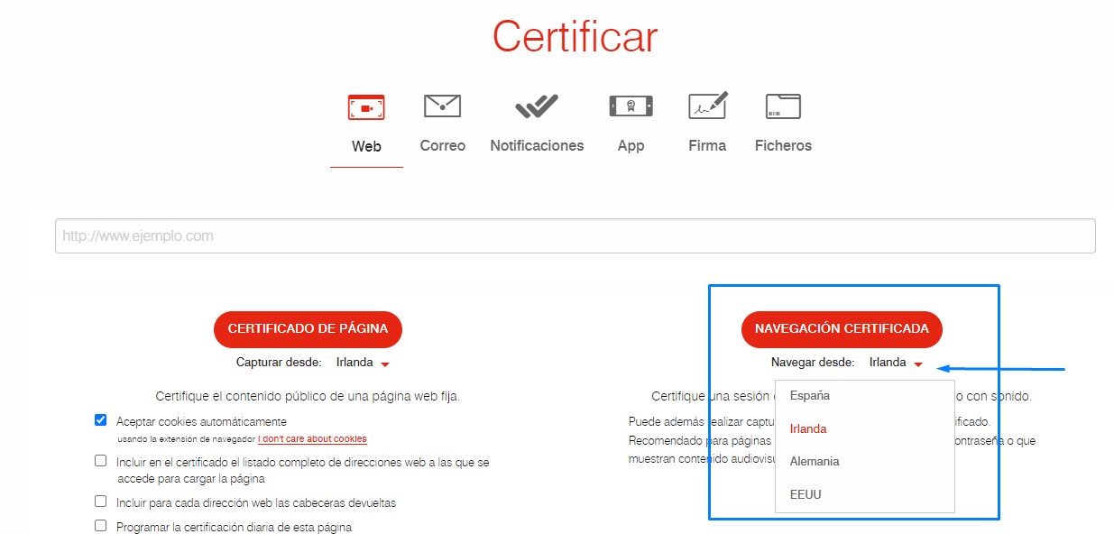 Este mismo servicio también permite certificar sesiones de navegación en vídeo, conectando al usuario a un navegador remoto que realiza la grabación de vídeo y audio.
